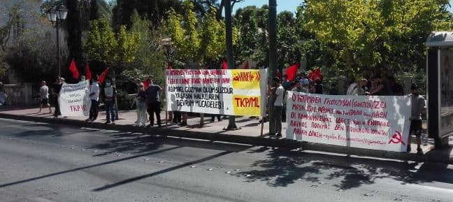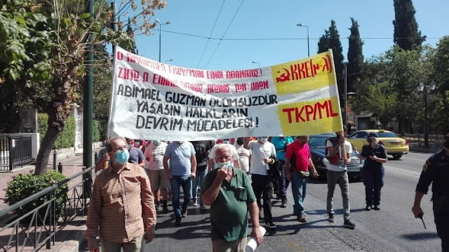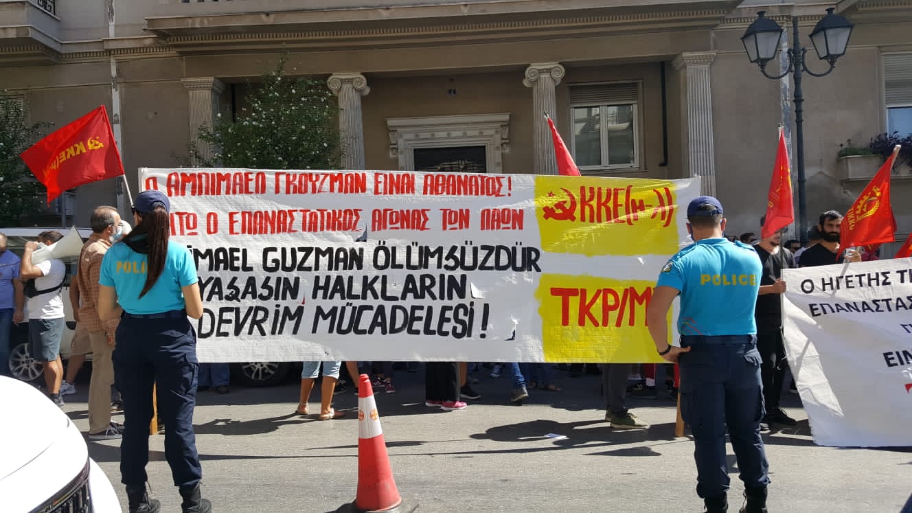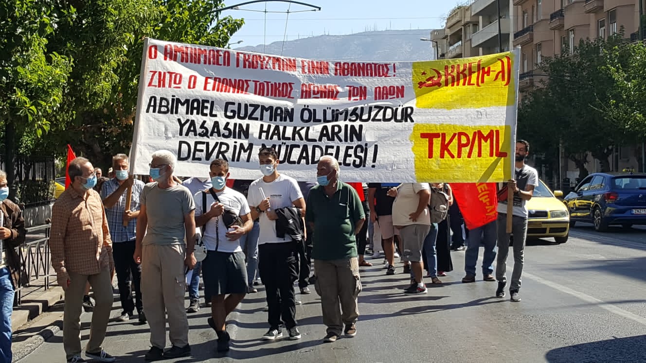 Peru Komünist Partisi Başkanı Abimael Guzman’ın (Gonzalo), faşist Peru devleti tarafından uzun süreli tecritte tedavisi engellenerek katledilmesi ve cenazesinin yoldaşlarına teslim edilmeyerek yakılması protesto edildi. 25 Eylül günü Yunanistan’ın başkenti Atina’da KKE(m-l) ve TKP/ML tarafından yapılan çağrı ile ve Anti-Emperyalist Cephe ve Halkların Anti-Faşist Hareketi’nin de katılımı ile protesto eylemi gerçekleştirildi. Saat 12.00’da Evangelismos Metro’da toplanan kitle, Gonzalo’nun katledilmesini protesto eden ve Halk Savaşı’nı selamlayan sloganlar eşliğinde Peru Konsolosluğu’na yürüyüşe geçti. Peru Konsolosluğu önünde katılımcı örgütlerin konuşmalarının ardından, Konsolosluk binasına protesto bildirisi asılarak eylem sloganlar eşliğinde sonlandırıldı.