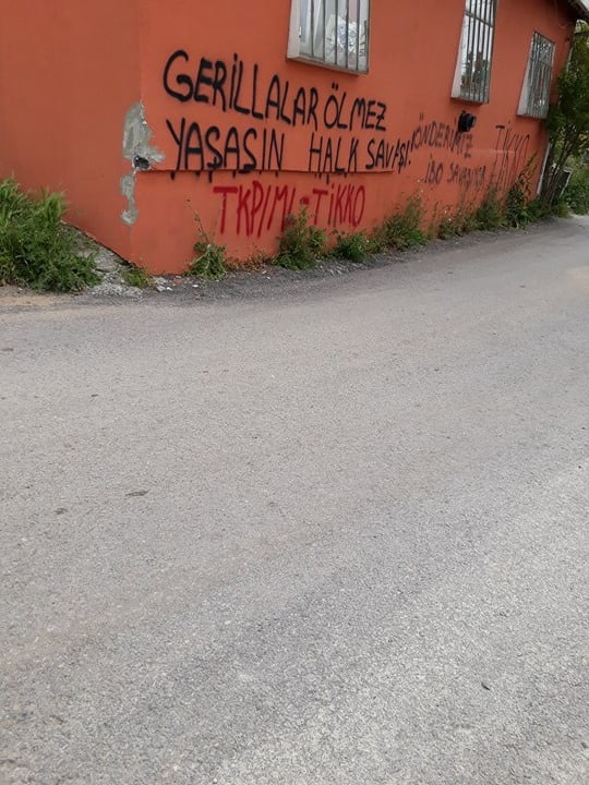Gülsuyu mahallesinde TİKKO militanları tarafından Dersim Aliboğazında şehit düşen 12 TİKKO gerillası için mahallenin çeşitli yerlerinde yazılamalar yapıldı.