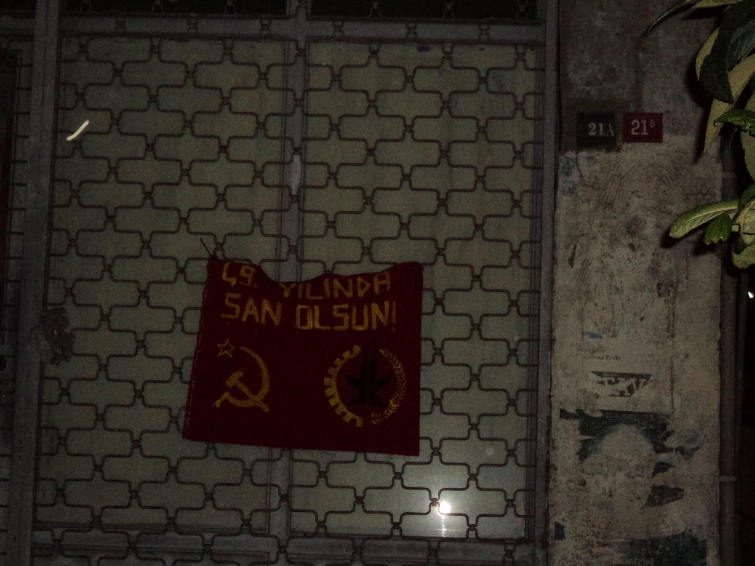 TKP/ML’nin 49. kuruluş yıldönümü vesilesiyle militanlar tarafından 24 Nisan gecesi, 1 Mayıs Mahallesi’nde üç farklı noktaya pankart asıldı.