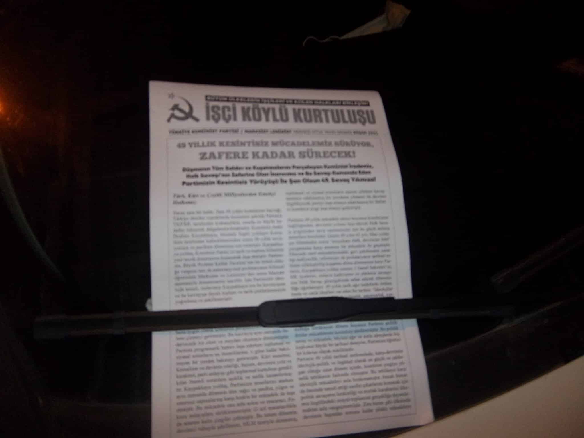 TKP/ML militanları tarafından Avcılar’da TKP/ML’nin merkezi kitle yayın organı İKK (İşçi Köylü Kurtuluşu)’nın “49. yıllık kesintisiz mücadele sürüyor zafere kadar sürecek” başlıklı özel sayısının dağıtımı gerçekleştirilirken, Esenyurt’ta da militanlar tarafından pankart asıldı.